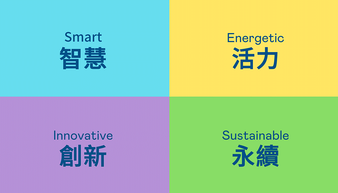 从稳重、信赖的龙门国际蓝开创新色彩,注入象征智慧蓝、活力黄、创新紫、永续绿的品牌色及动态多变的几何图形,呼应不设限的「Possibilities」精神,代表多元的专业技术及领域,在碰撞中相互触动、融合、延伸,持续激荡出更多新的可能性。